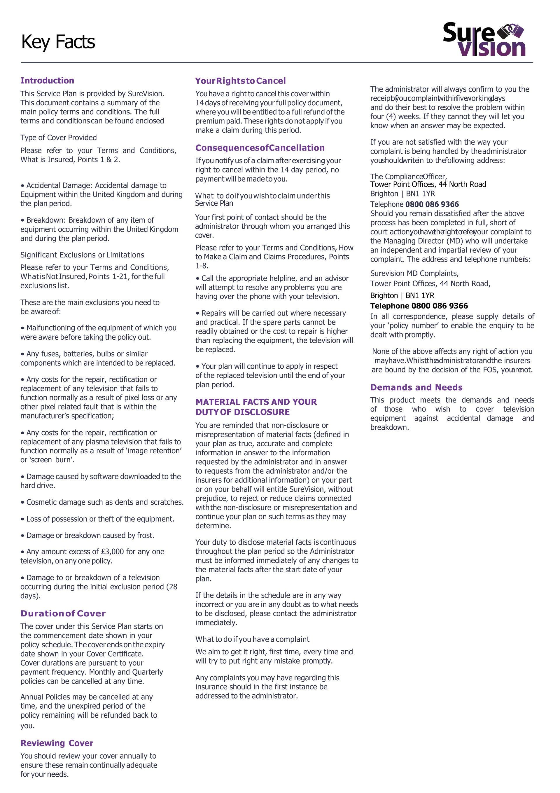 To view our Terms and Conditions and Key Facts of our Policies, please click